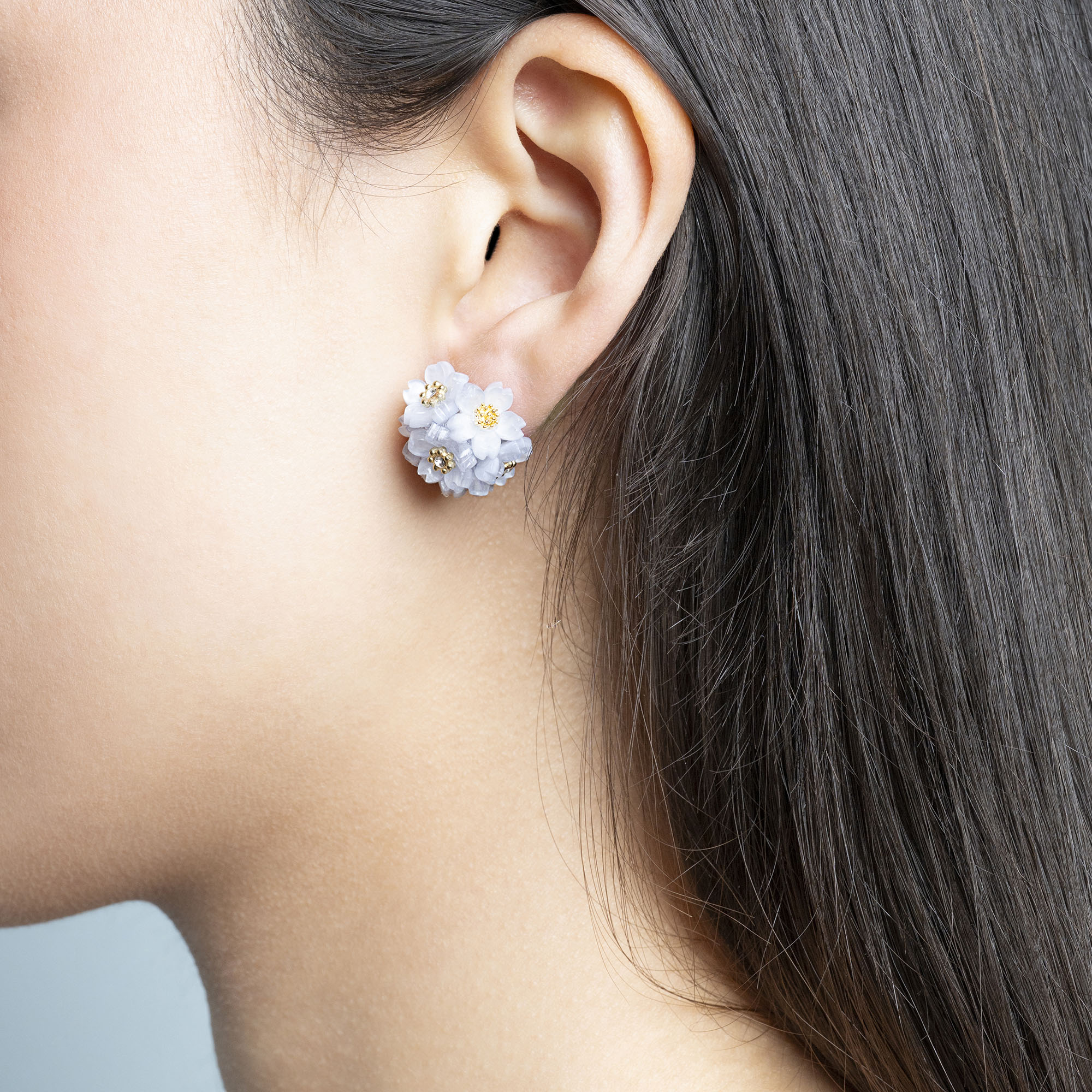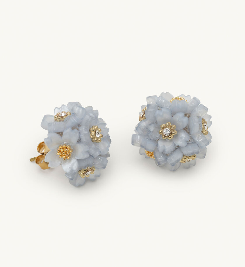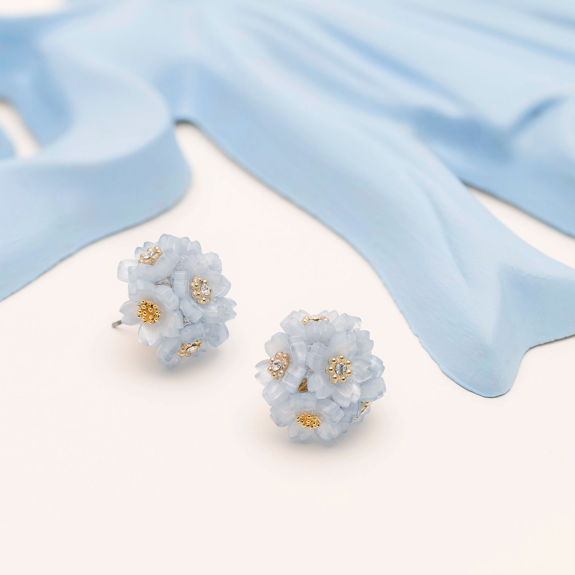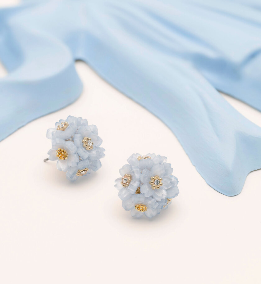 Turn heads with our Chloe earrings - Celestial blue. Its cluster of delicate blooms on a larger-than-usual stud makes for an eye-catching, playful detail to your spring/summer looks.