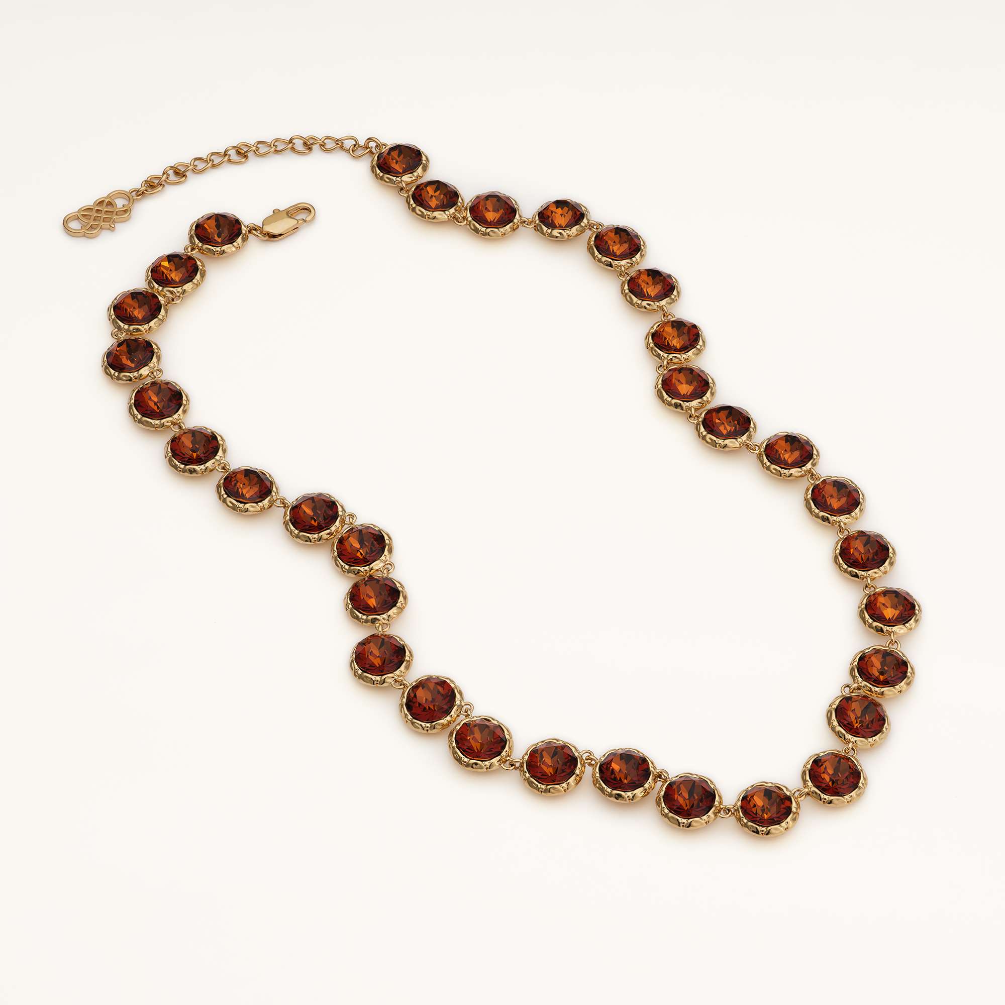 A breathtaking piece, our Victoria necklace knows how to make jaws drop. The alluring smoked ambed stones are linked together on an endless strand of gold. Complete your look with other items from our Victoria collection.